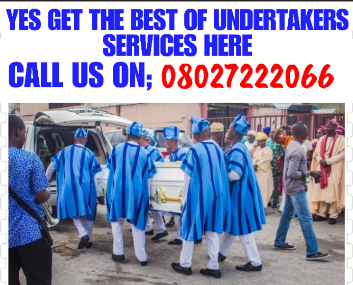 At ADA FUNERAL & UNDERTAKER SERVICES ABUJA, you can now call us at anytime today, on: (☎️08027222066), to buy caskets, hire lowering device, trolley stand, pallbearers, funeral bandsmen & trumpeters, ambulance services, mortuary & embalment and a whole lots more.