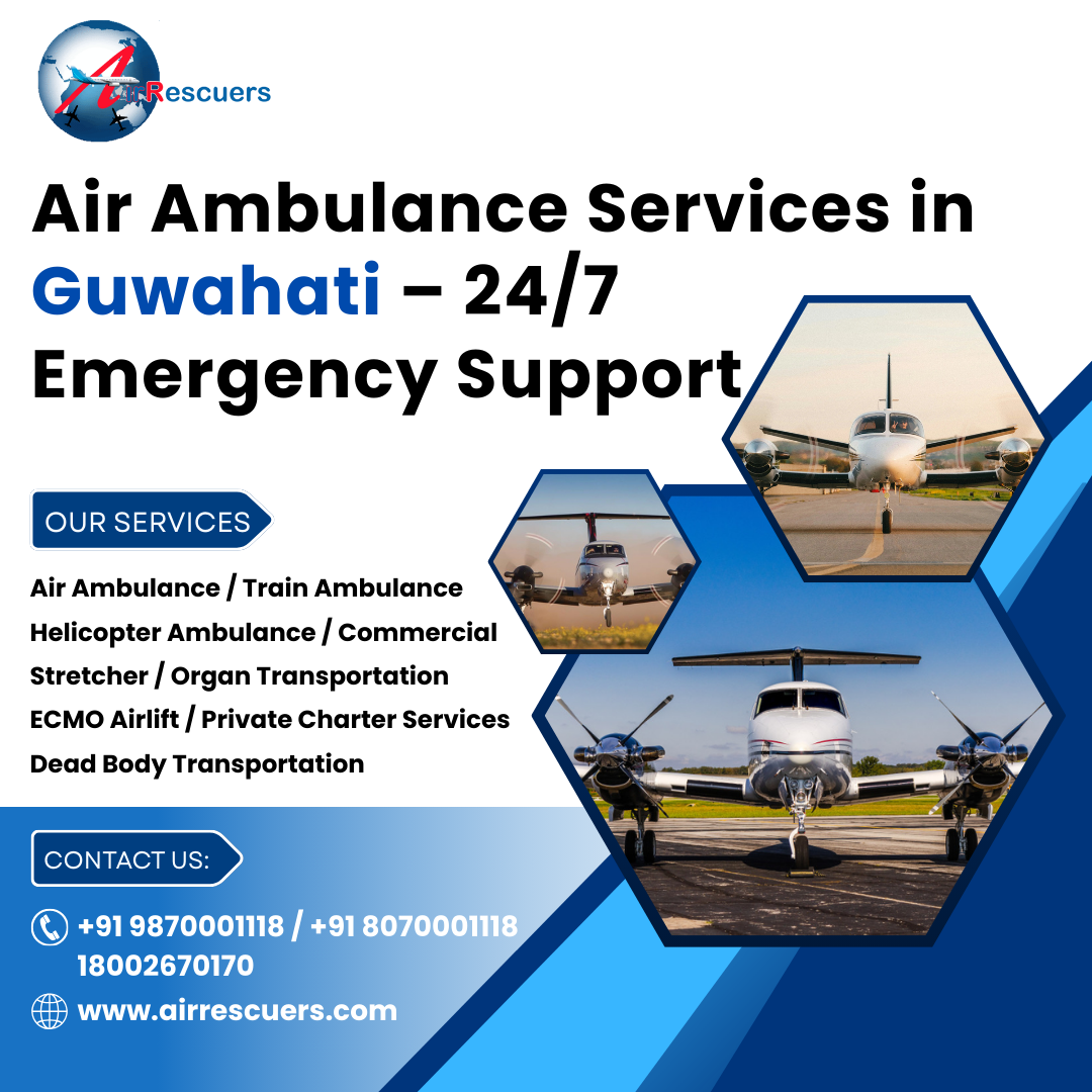 Call now for immediate assistance and experience professional, trustworthy, and life-saving air ambulance services in Guwahati. 📞 +91 9870001118 / +91 8070001118 / 18002670170 | 🌐 www.airrescuers.com