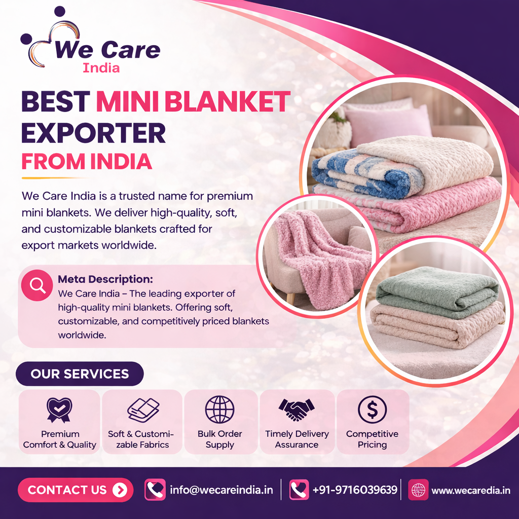 That’s why, with the help of this article, we want to introduce you to a mini blanket exporter from India for the care and safety of your baby. Multiple mini blanket exporters are available in India, but not everyone is trustworthy and recognised. If you are a single individual, a company, a business, or a wholesaler. We believe We Care India would be the best option for you. It’s the manufacturer and exporter that care about your comfort. It ensures comfy mini blankets for every home and its babies. We feel happy when babies feel comfort and joy from a mini blanket. We feel proud as a manufacturer when we hear our comfy mini blankets bring the giggles to the faces of newborns.