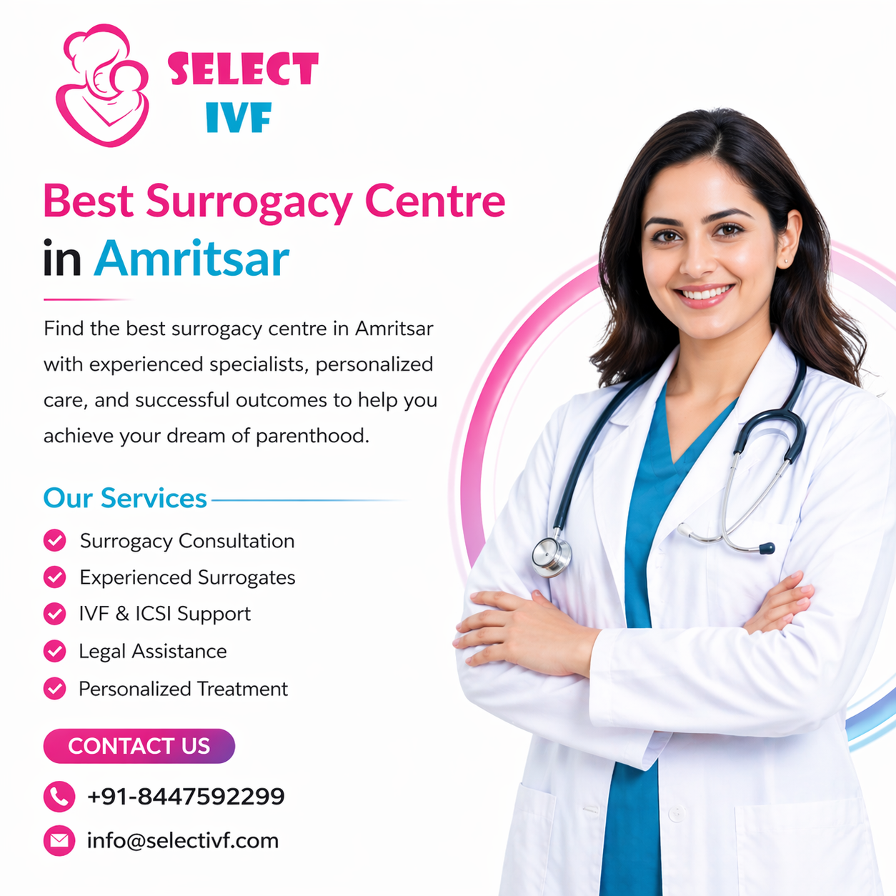 The treatment comes under the ART technology which is about fertilizing the human particles in the lab through highly advanced and proficient equipment. There are different types of infertility treatment that come under it including IUI, test tube baby, ICSI, surrogacy, male infertility, female infertility, etc. If looking for more information then, read the blog till the end to know about other factors of surrogacy such as the Best Surrogacy Centre in Amritsar, cost of surrogacy with table, the success rate of surrogacy with table, etc.