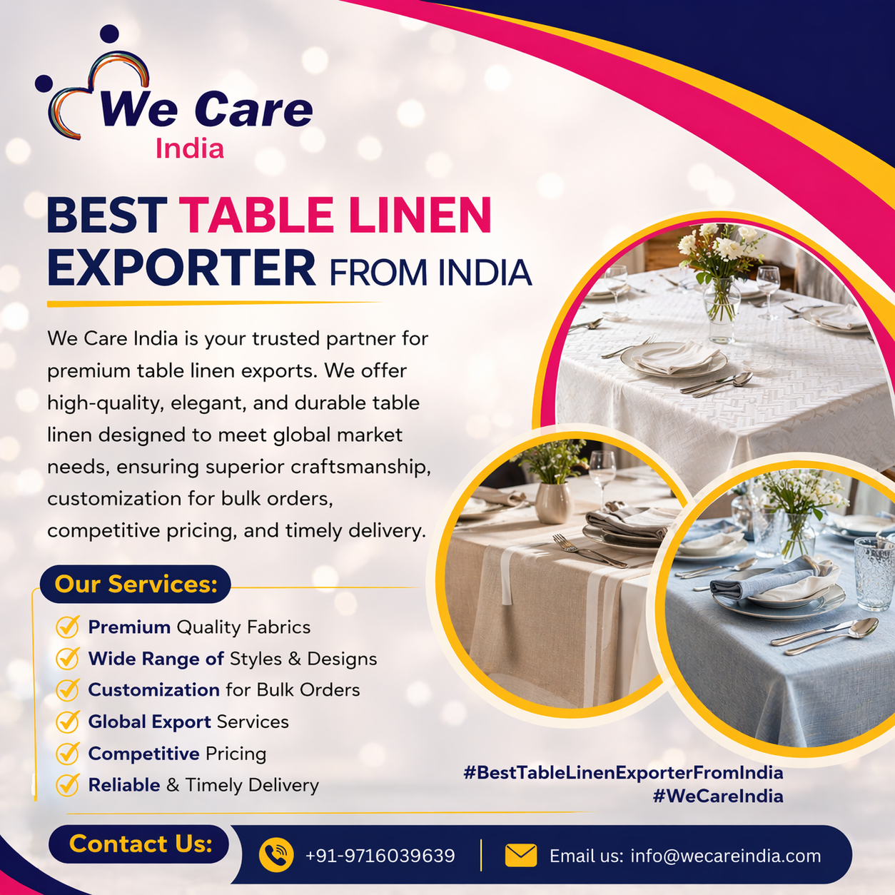 Indian exporters supply beautifully crafted table linens that blend traditional techniques with modern styles. They focus on both comfort and class, offering fabrics that look elegant and last long. With natural materials, fine stitching, and a touch of Indian artistry, these table linen exporter from India are making homes and hotels around the world more graceful and inviting.