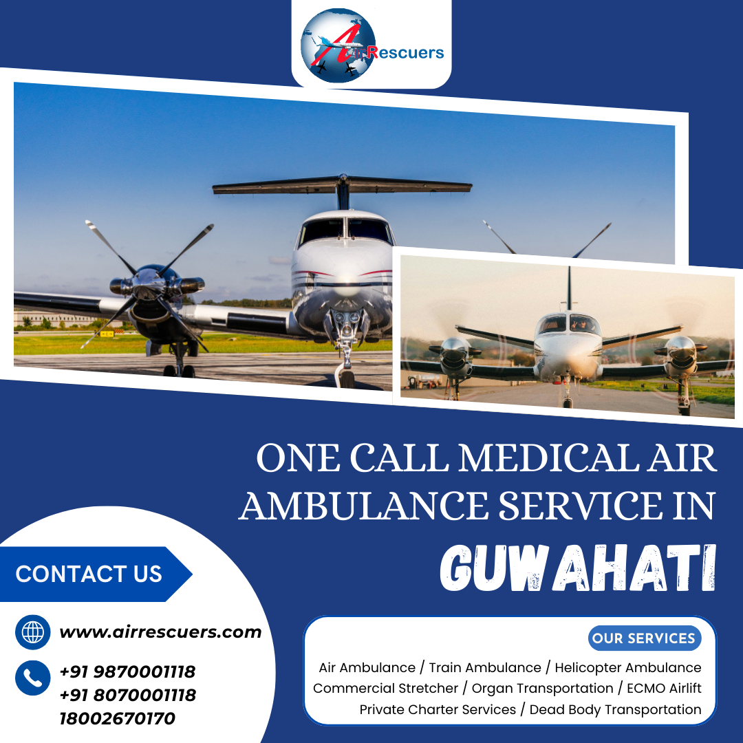Call now for immediate assistance and experience professional, trustworthy, and life-saving air ambulance services in Guwahati. 📞 +91 9870001118 / +91 8070001118 / 18002670170 | 🌐 www.airrescuers.com