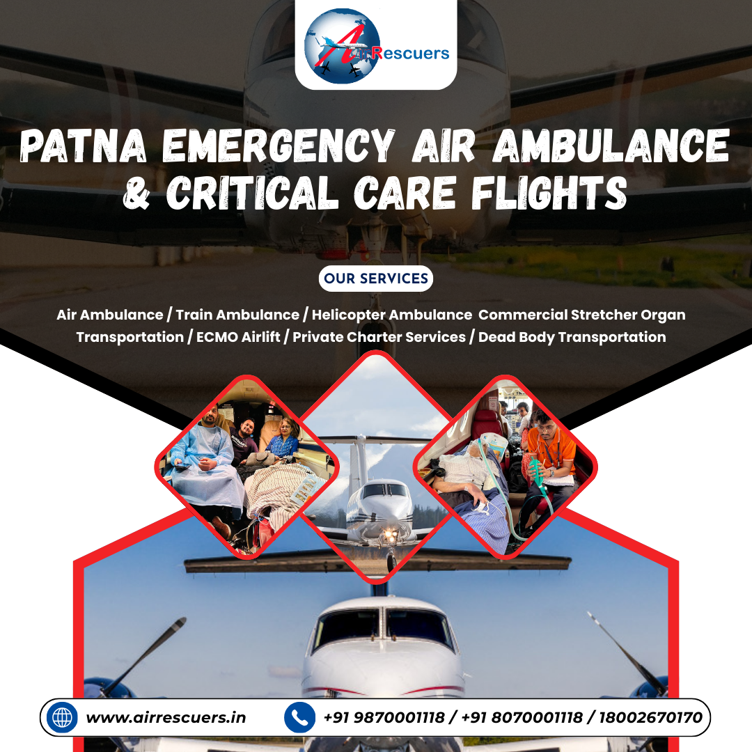 24/7 emergency air ambulance service in Patna with ICU-equipped aircraft and expert medical team. Safe and fast patient transfer to leading hospitals across India. Immediate response for critical cases. Call anytime for urgent medical flights.