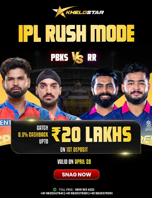 Experience unmatched cricket excitement with the epic PBKS vs RR showdown today! Take your sports passion to the next level by entering the Khelostar IPL Rush Mode. For a strictly limited time, we are offering dedicated fans a spectacular 0.5% cashback up to ₹20 Lakhs on your very first deposit! This exclusive premium promotion is valid only on April 28 and is easily accessible via a quick, secure bank transfer. Don’t miss your chance to maximize your match-day engagement and track every thrilling moment. Snag now, join the premier sports community today, and make this thrilling encounter truly unforgettable!