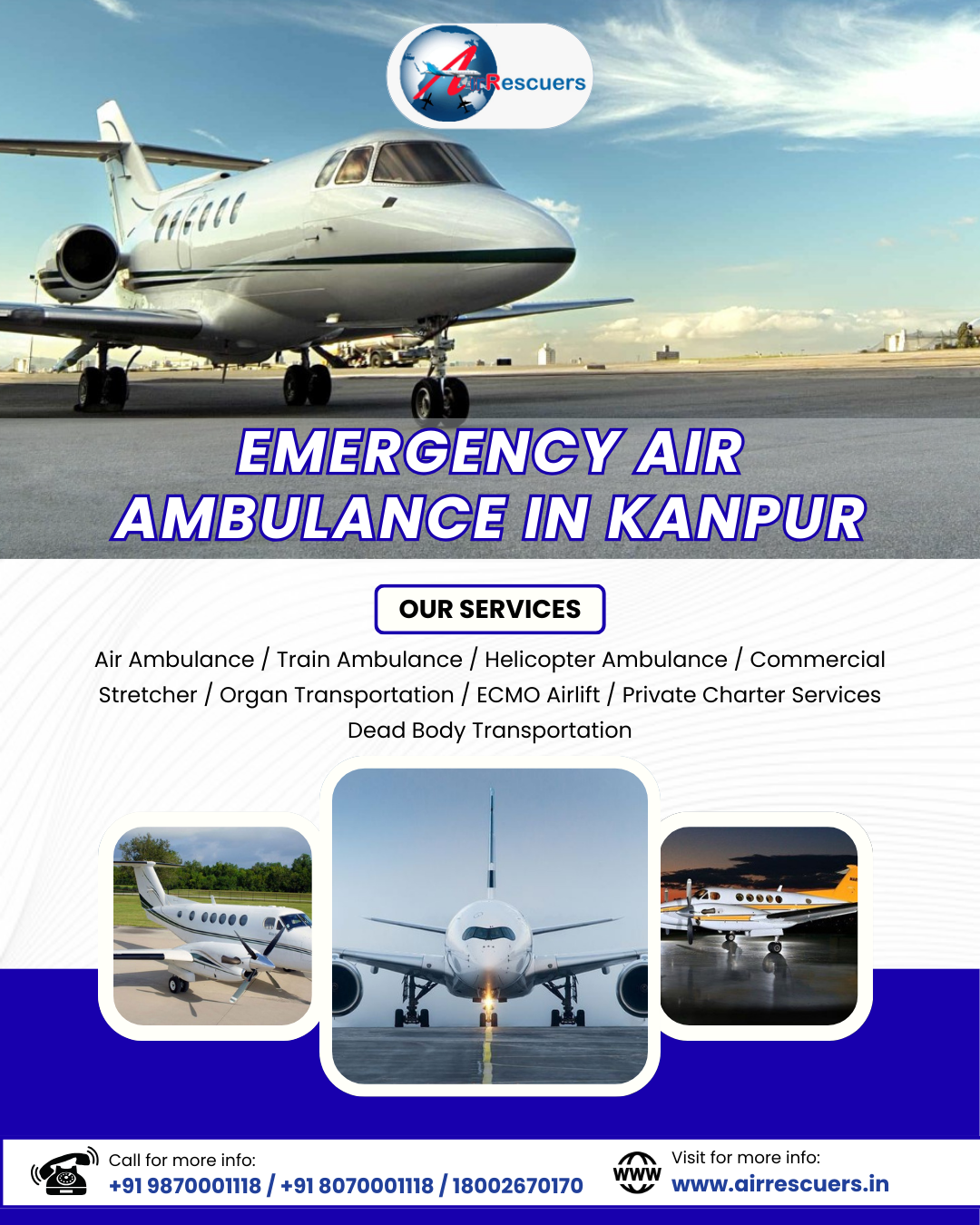 With a strong commitment to patient safety, our Kanpur Air Ambulance Services deliver rapid evacuation and specialized care. We handle each case with urgency, professionalism, and compassion.